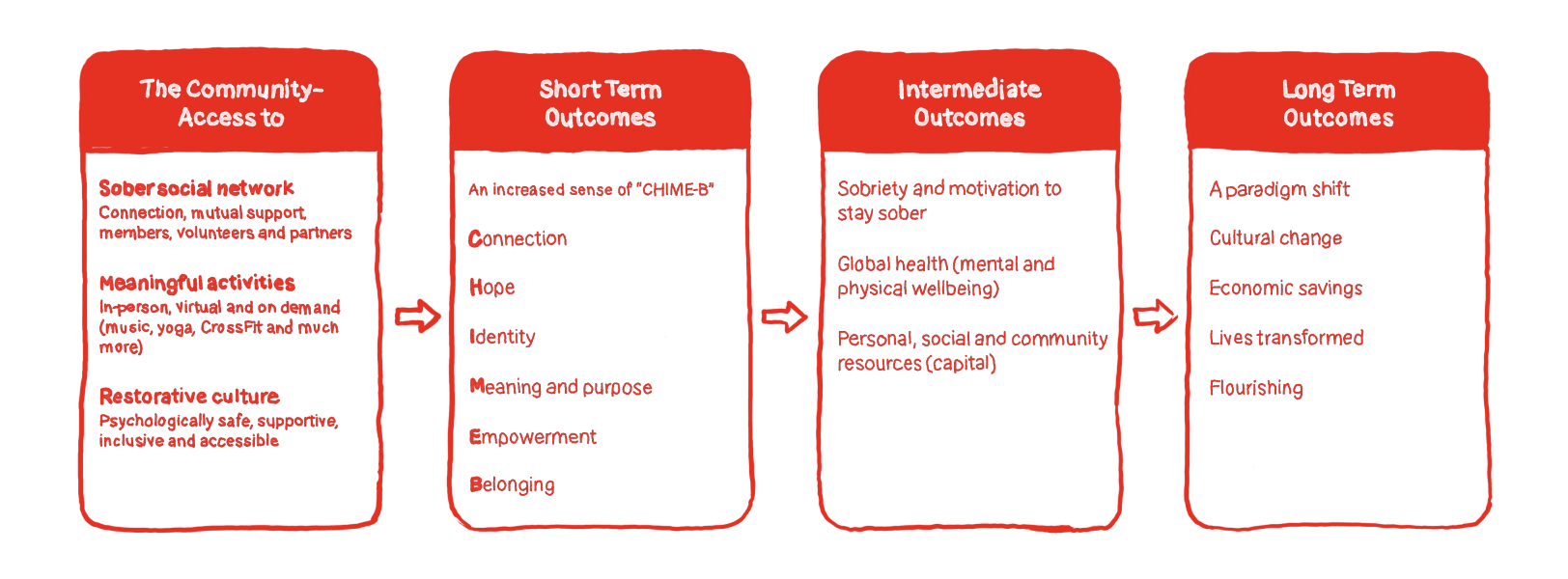 The Phoenix logic model provided by the organization's website. Shows how "CHIME-B" provides long-term outcomes. (2024)