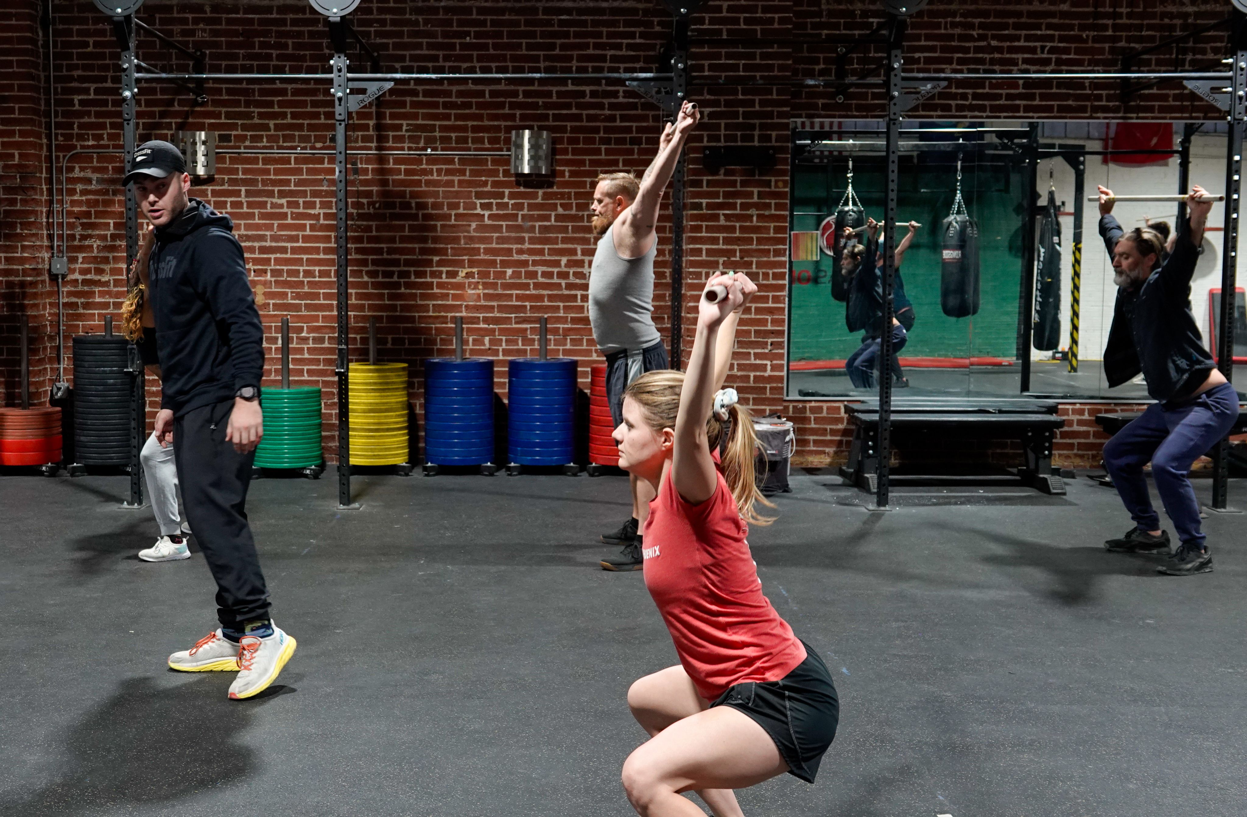 Phoenix members chatting before CrossFit class in Denver on Wednesday, Nov. 20, 2024. (Evanie Gamble, CU News Corps)