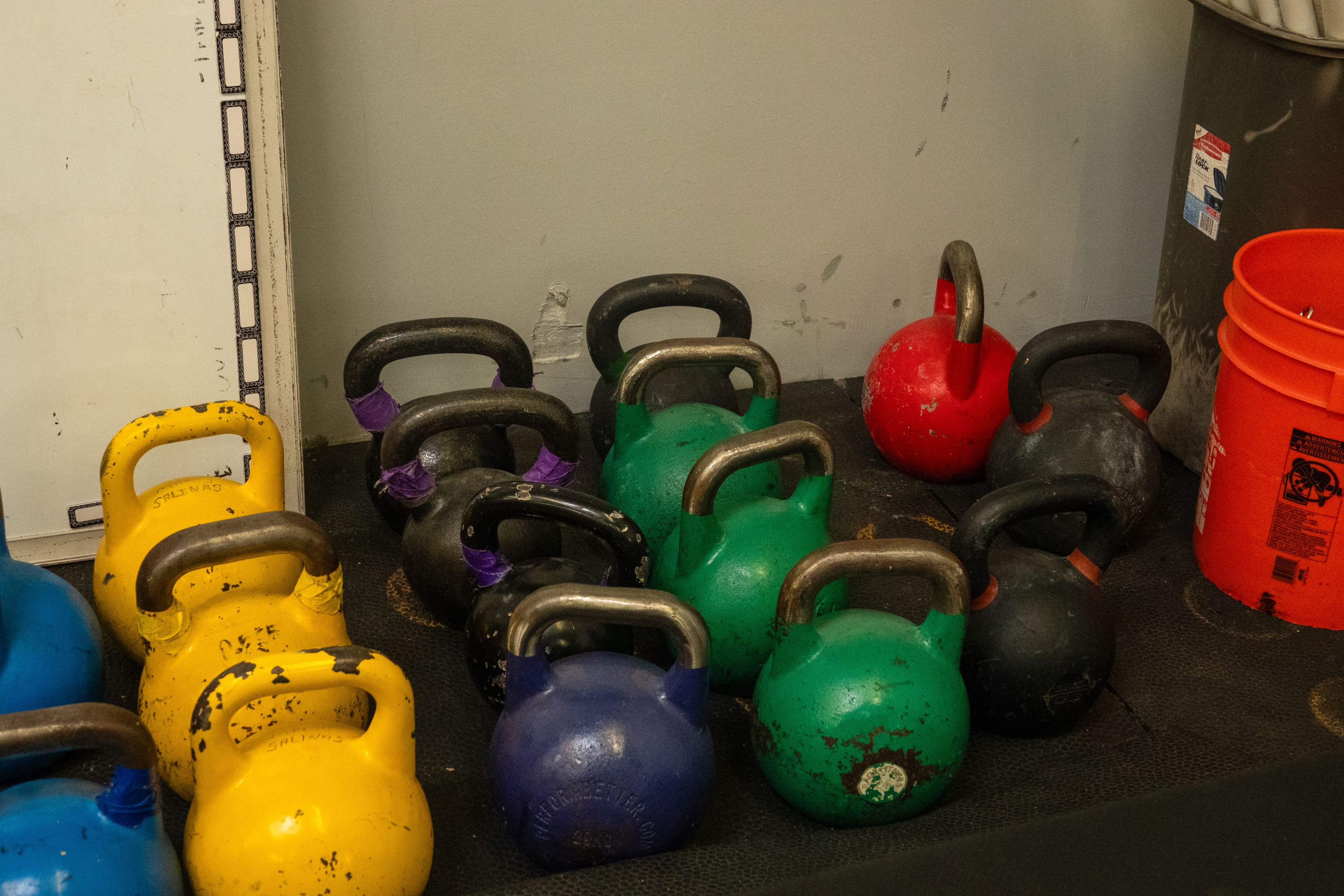 Kettlebells that are used for CrossFit classes at The Phoenix in Colorado Springs. Photo taken on October 16, 2024. (Norah Hively, CU News Corps)