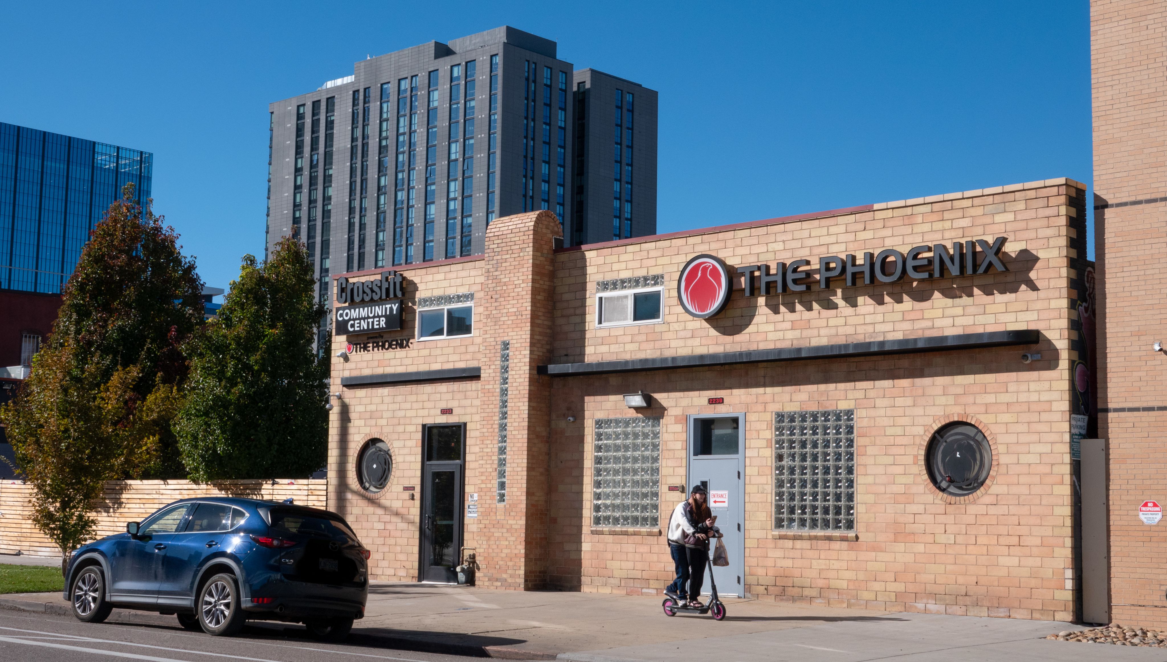 A sign posted outside The Phoenix shows the Denver community they offer CrossFit classes. Photo taken on Nov. 12, 2024. (Norah Hively, CU News Corps)